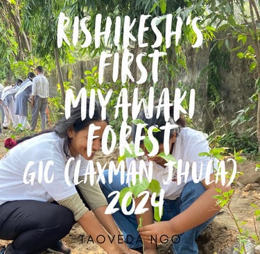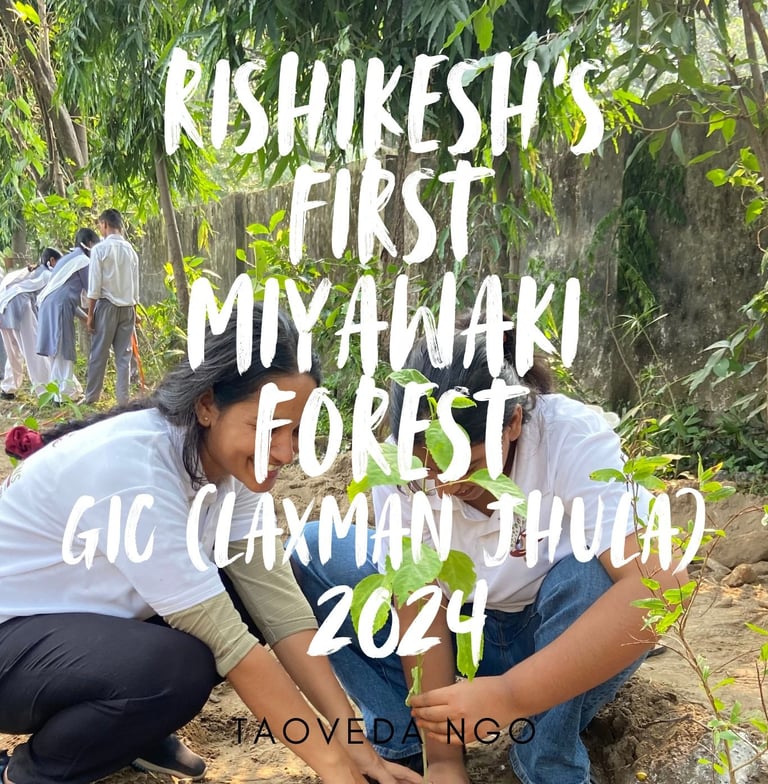 In 2024, Taoveda Dimensions NGO, in collaboration with Rise Foundation, proudly initiated Rishikesh’s first-ever Miyawaki Forest at GIC Laxman Jhula. This innovative afforestation project marks a significant step towards restoring the ecological balance and promoting sustainable green practices in the spiritual hub of India.
