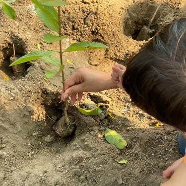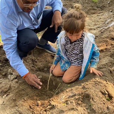 Moments of joy as children plant their first trees, symbolizing hope for the future.